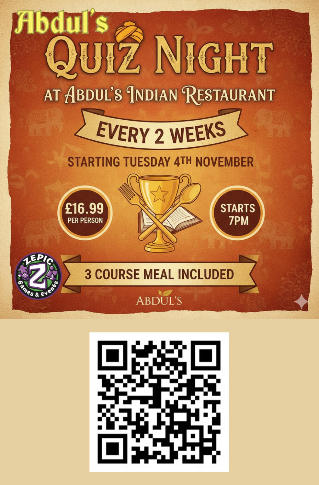 Starting Tue 4th Nov Starts 7pm 3 Course Meal Inc £16.99pp